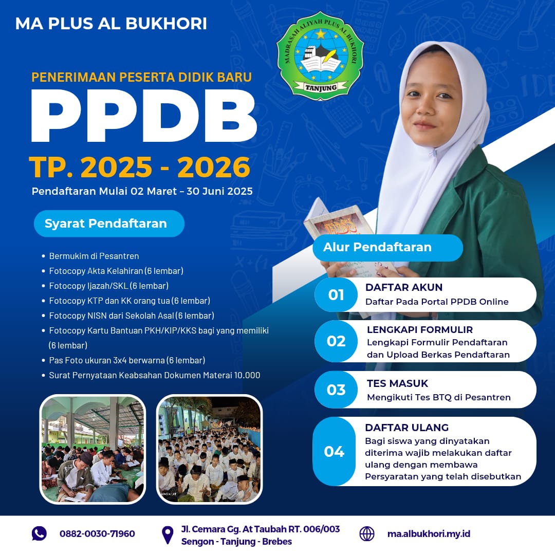 Pendaftaran MA Plus Al Bukhori dilaksanakan FULL ONLINE, oleh karena itu perhatikan hal-hal berikut :